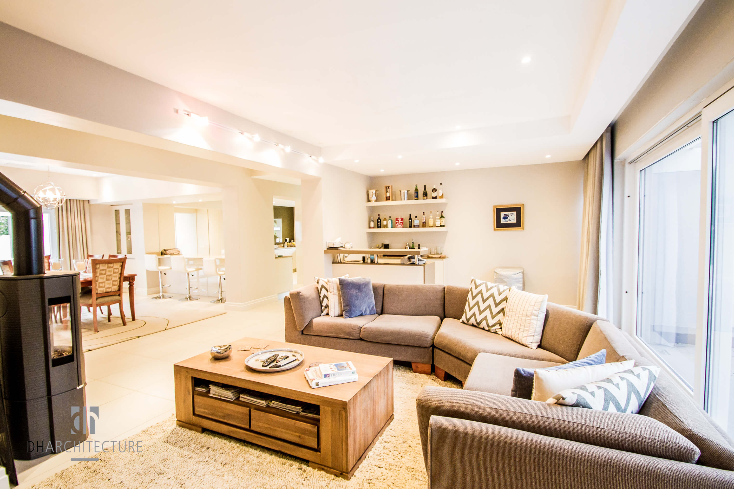 The original interior and exterior was very dated and without a specific style. The front elevation particularly needed to be updated. The clients required a design that is timeless with a homely feel. The overall layout was updated by removing internal walls to create an open plan layout. A complete revamp of all the finishes, fittings and joinery was done.