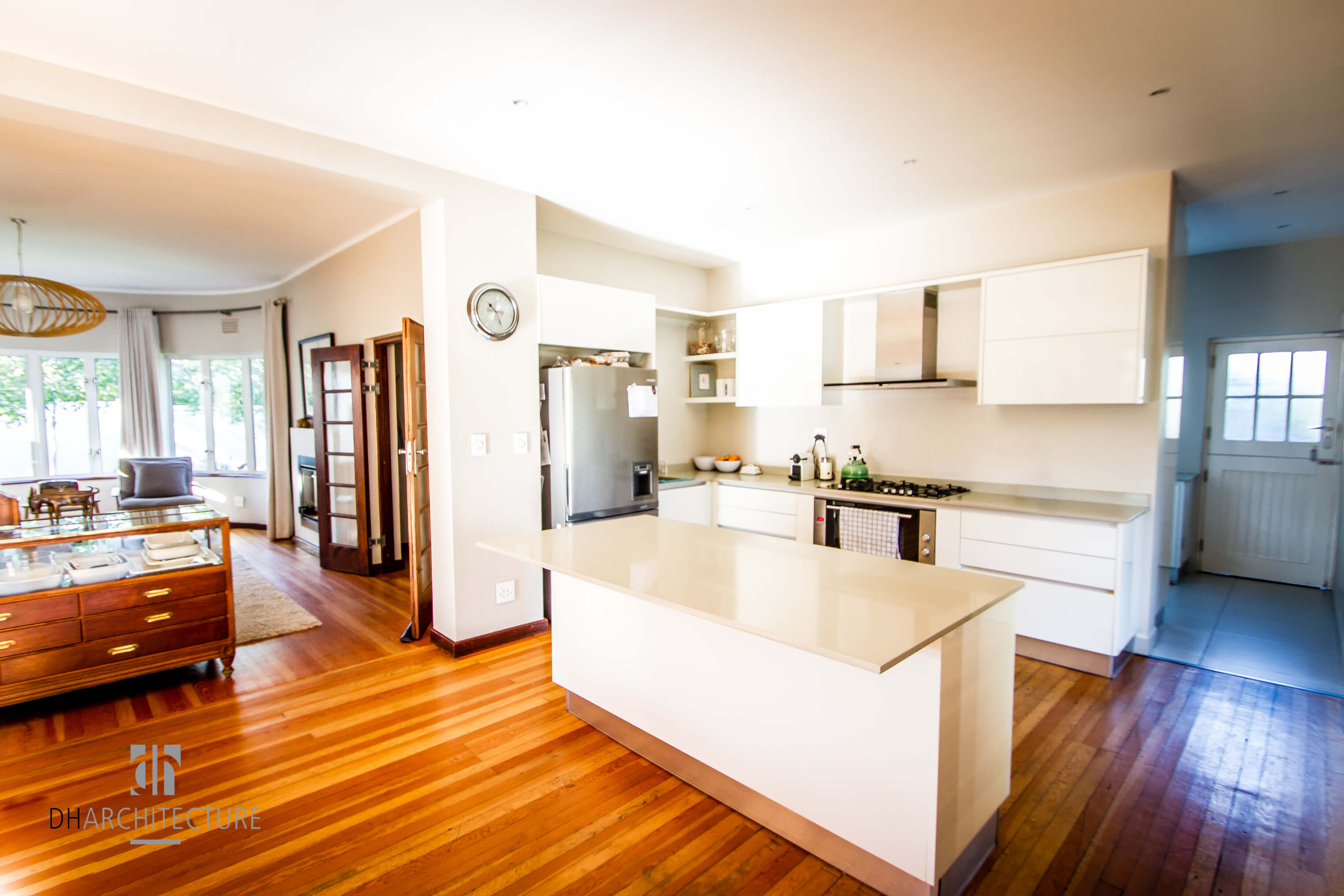 The original house had lots of character, but the layout was outdated. The characteristic rounded front elevation had to remain the focal point of the house. The aim was to keep the character of the house, but to update it and make it into a comfortable family home. The rooms were all opened up to create an open plan Kitchen, Dining and Living area.
